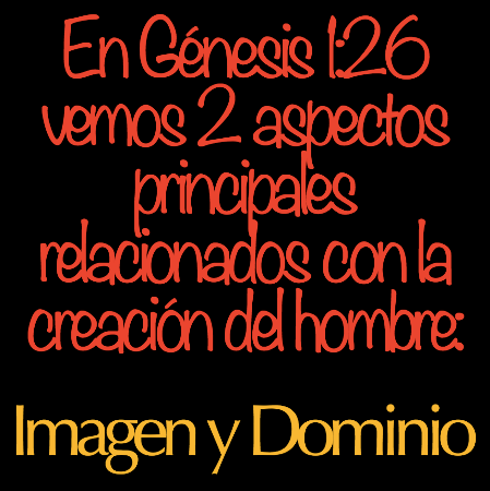 En Génesis 1:26 vemos 2 aspectos principales relacionados con la creación del hombre: Imagen y dominio. «La imagen tiene como objetivo la expresión de Dios y el dominio tiene como objetivo la representación de Dios, a fin de derrotar a Su enemigo”. Cuando el hombre fue creado, a la imagen de Dios fue creado. Dios quiere expresarse a través del hombre. Cuando recibimos al Señor y nos abrimos a Él y lo disfrutamos, Él se expresa en nosotros. «La imagen tiene como objetivo la expresión de Dios».